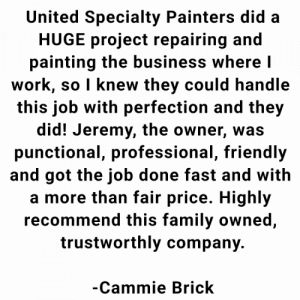 Here at United Specialty Painters, we turn gloomy into glowing. From your first call to the last square inch of installation, your experience and our quality are always top priority-and you'll see it!